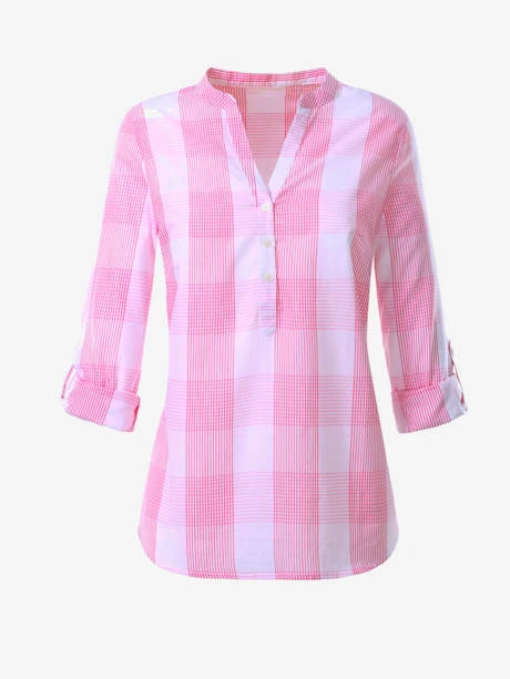Carreaux décontractés, batiste fine. Chemisier. Col montant, patte de boutonnage courte et ourlet arrondi. Manches longues pouvant être retroussées et fixées aux 3/4.