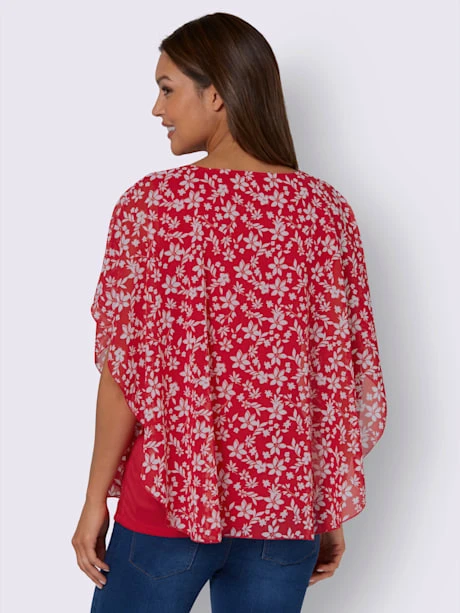 Chic, confortable et affinant : chemisier en qualité Georgette légère et au look superposé tendance. Opaque grâce au débardeur long cousu dessous. Mancherons légèrement transparents.