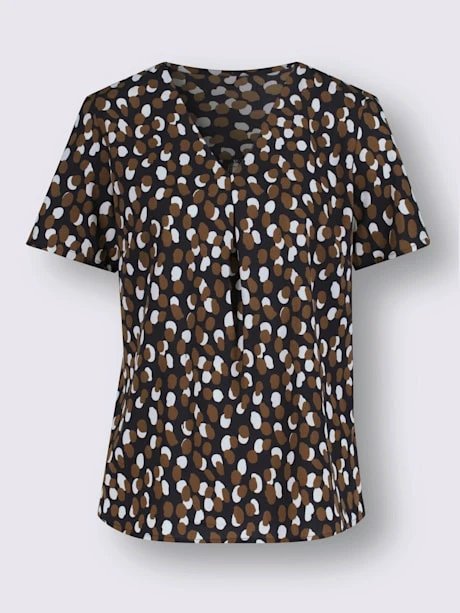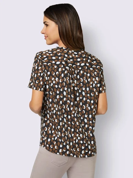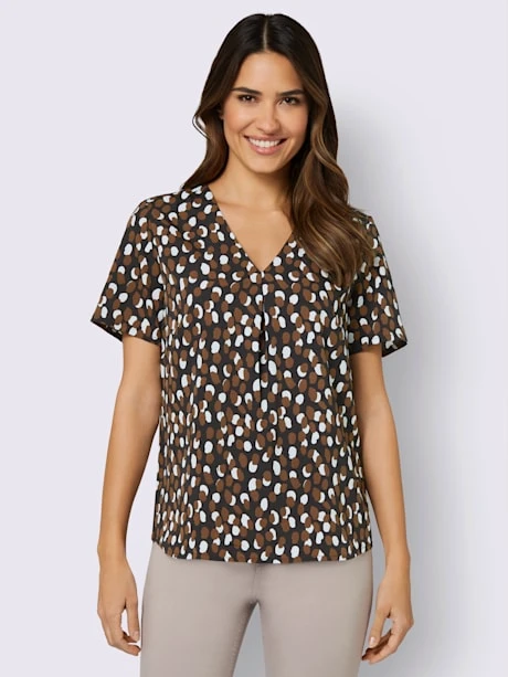 La cerise sur le gâteau dans votre garde-robe : le chemisier à pois tendance. Coupe flatteuse avec col V, petits plis devant et fronces dans le dos, ourlet légèrement arrondi.