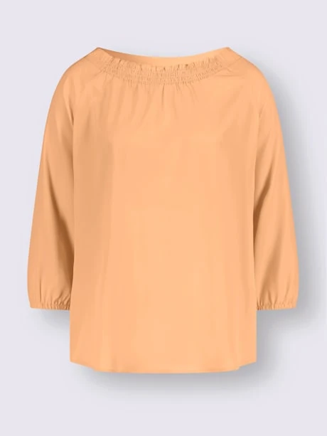 Chemisier en qualité crêpe facile d’entretien avec imprimé fleurettes tendance. Empiècement smocké devant à l’encolure ronde. Manches raglan aux finitions extensibles. Ourlet légèrement arrondi devant et au dos.