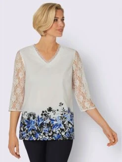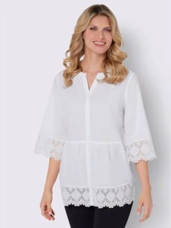 Chemisier En Dentelle Fente Délicate Aux Manches Et à L’ourlet