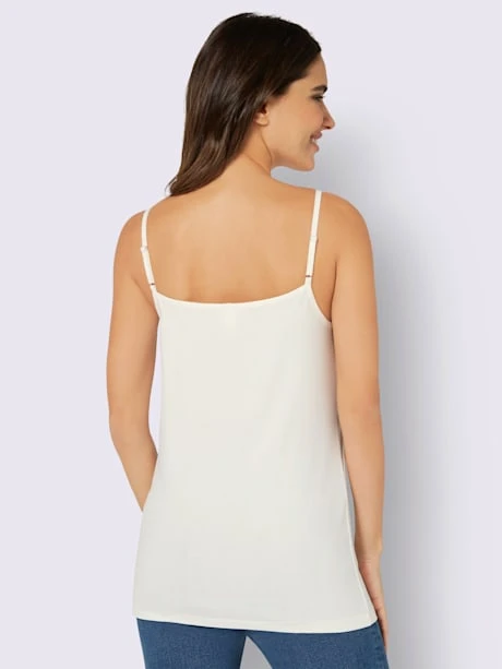 Un basique indispensable ! Débardeur avec encolure ronde et bretelles spaghetti réglables en longueur.