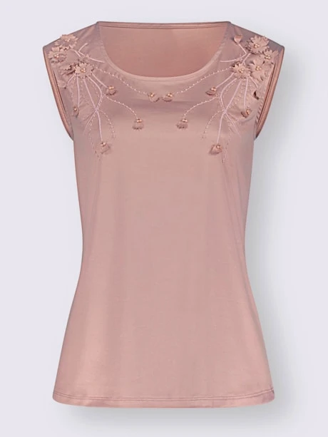 Débardeur avec élégante application florale et superbe broderie avec perles décoratives devant.