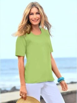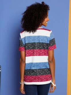 T-shirt En Coton Empiècements Rayés Effet 2 En 1 Col En V Manches Longues