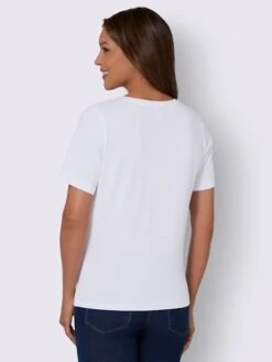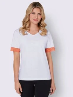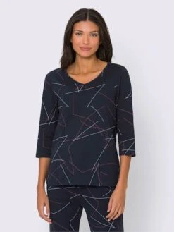 T-shirt Fluide Imprimé Moderne Avec Touches Argentées Col En V