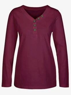 T-shirt Femme Col En V Avec Boutons Décoratifs Manches Longues