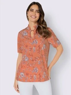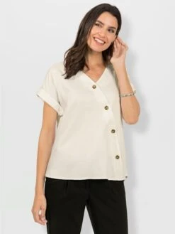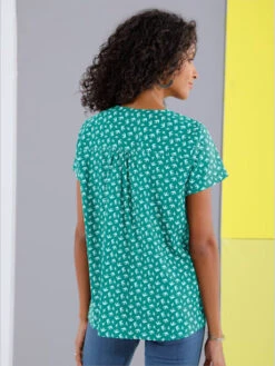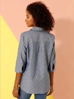 Chemisier Aspect Denim Motif Papillon Col Chemise Manches 3/4