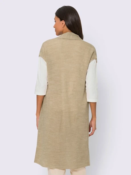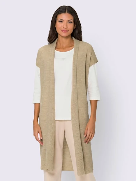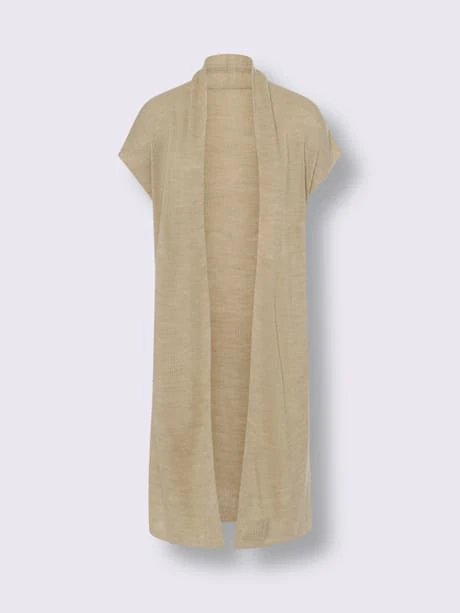 Frais, décontracté et flatteur ! Gilet en tricot à porter ouvert avec col châle flatteur et mancherons.