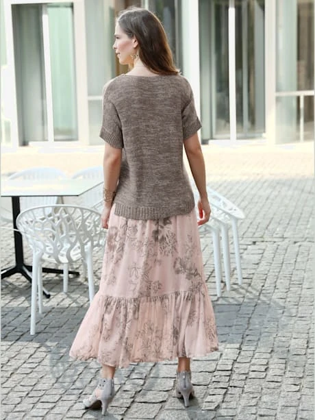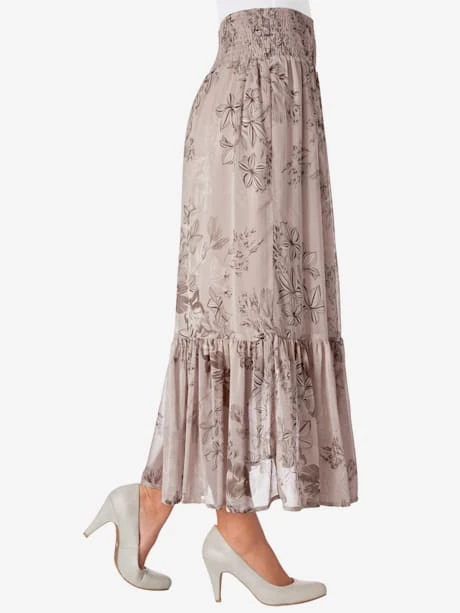 Cette jupe à l`imprimé floral en mousseline se montre féminine et très confortable grâce à sa ceinture élastique smockée. Doublure opaque jusqu`aux fronces décoratives.