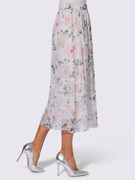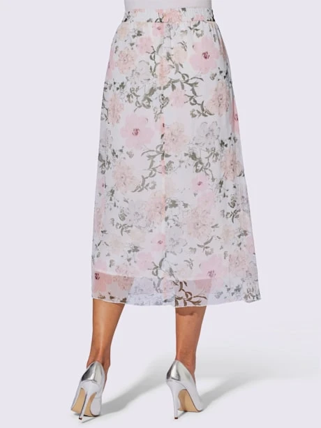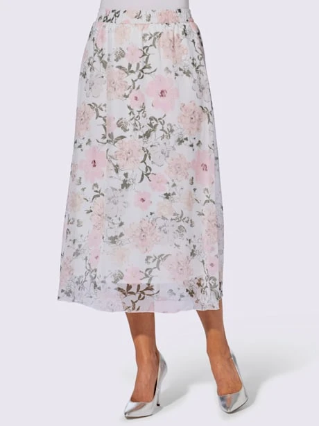 Vous ferez des envieuses avec cette jupe évasée féminine au joli motif floral en qualité mousseline légère ! Facile à enfiler avec ceinture élastique. Sans ceinture.