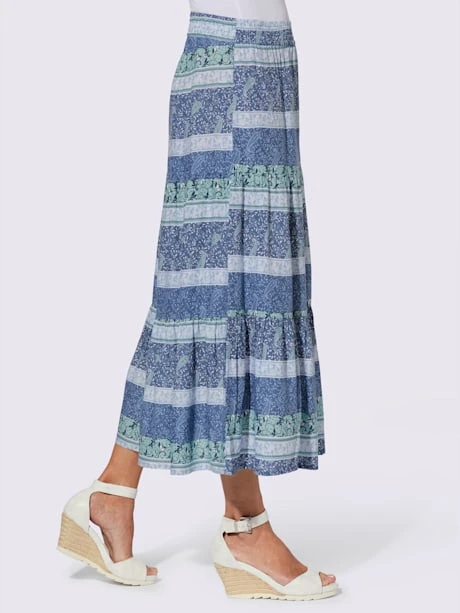 Une saison pleine d’entrain ! Jupe légèrement évasée en viscose douce et fluide. Ceinture élastique. Imprimé paisley tendance. Effet de couleur différent pour chaque pièce !