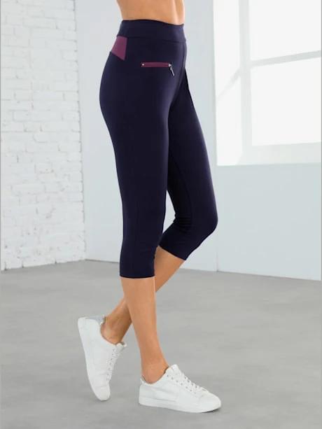 Longueur légère : les leggings courts sont idéaux pour les activités estivales. Ceinture élastique et petite poche à glissière horizontale sur le côté droit. Empiècement contrasté au dos.