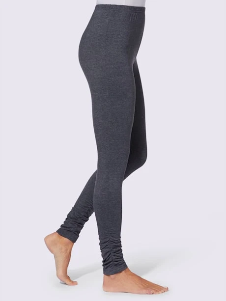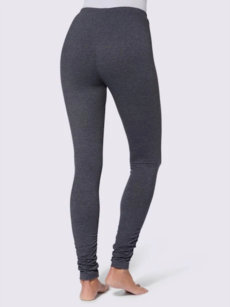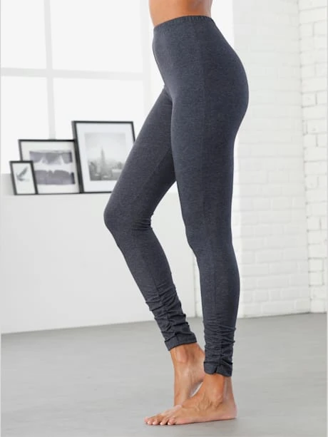 Legging ultra-confortable à l’aspect chiné. Ceinture élastique et fronces latérales au bas des jambes.