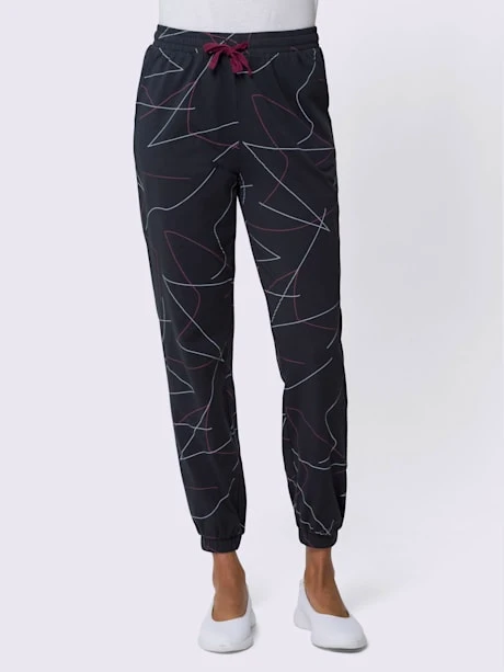 Pantalon en jersey décontracté à imprimé graphique. Ceinture élastique, coulisse et lien à nouer contrasté pour confort optimal. 2 poches devant. Bords-côtes extensibles à la finition des jambes pour un look décontracté.