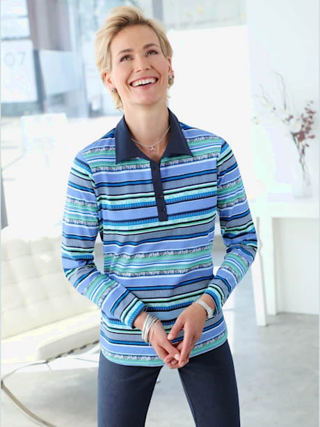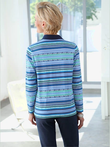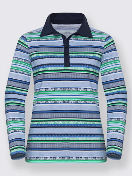Ce polo marque des points avec ses différentes rayures imprimées et le col polo uni avec la petite patte de boutonnage. Manches longues.