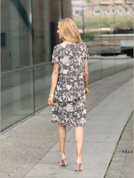 Extrêmement féminine ! Idéale pour de nombreuses occasions, cette robe sublime votre silhouette grâce à sa coupe en A et son look superposé en diagonale. Glissière latérale discrète. Ravissant motif floral en qualité vaporeuse. Opaque grâce au fond de robe assorti avec pinces poitrine.