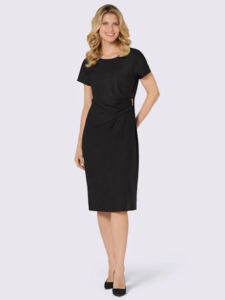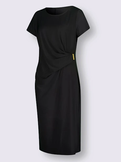 Élégante robe dotée de fronces flatteuses et d’une boucle décorative brillante devant. S’adapte à toutes les silhouettes.