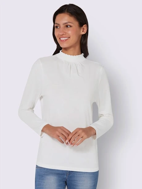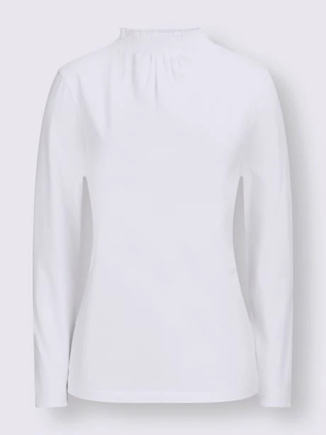 Séduisant T-shirt à col montant. À porter seul ou sous un blazer, une veste en tricot, etc. Col smocké, fronces devant.