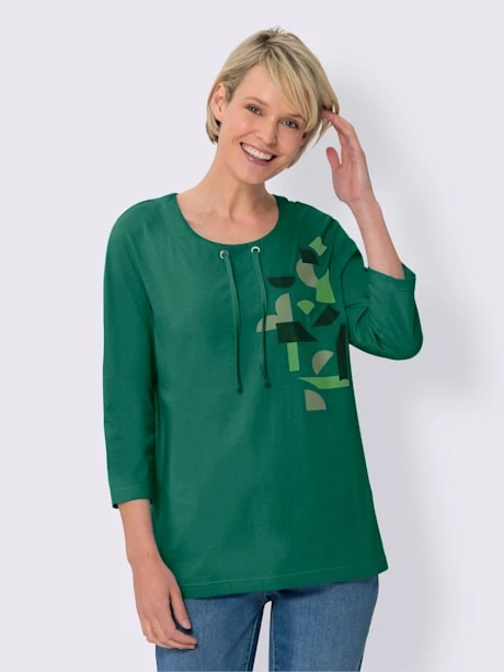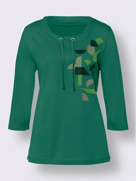 T-shirt pétillant ! Encolure ronde avec coulisse et liens à nouer, imprimé géométrique devant. Manches 3/4.