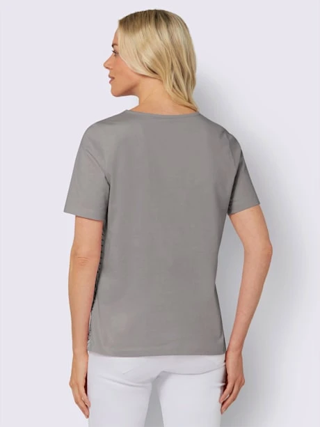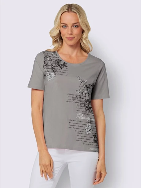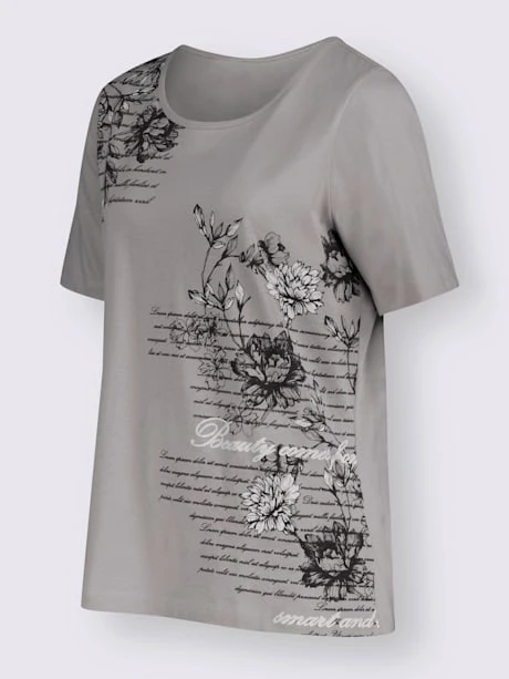 Ce T-shirt prouve véritablement que les inscriptions tendance et les fleurs féminines s’associent parfaitement. Passepoil à l’encolure ronde, manches courtes et dos uni. Qualité agréable à porter.