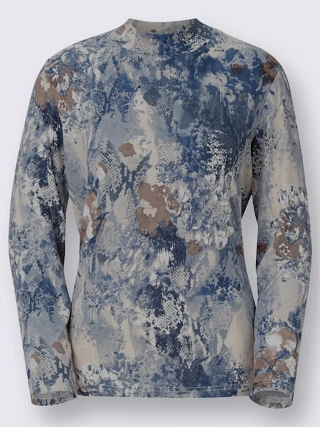 T-shirt doux et confortable à motif fantaisie. Col montant. Manches longues.