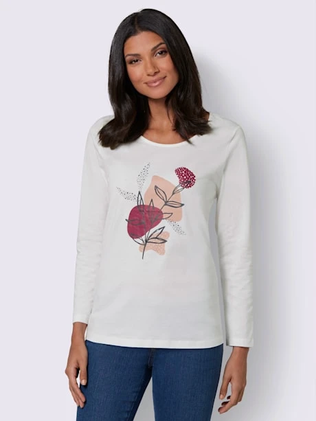 Facile à assortir et agréable à porter – T-shirt avec imprimé devant. Encolure ronde et manches longues.