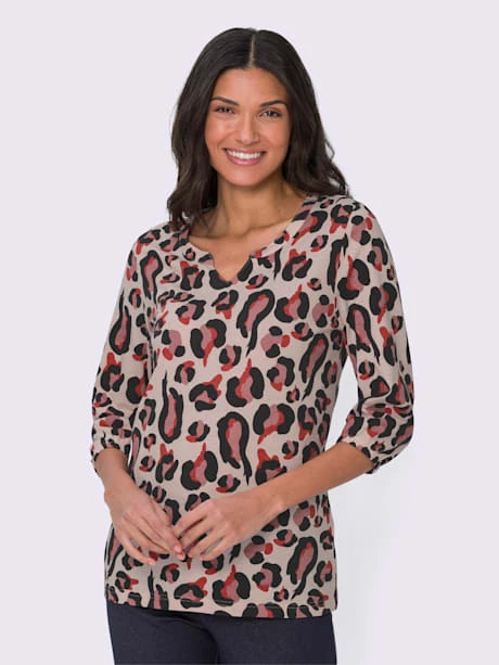 Ce T-shirt de loisirs agréable à porter est doté d’un magnifique imprimé animal. Coupe tendance avec encolure ronde, petit V et finition élastique aux manches 3/4.