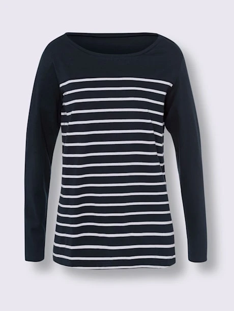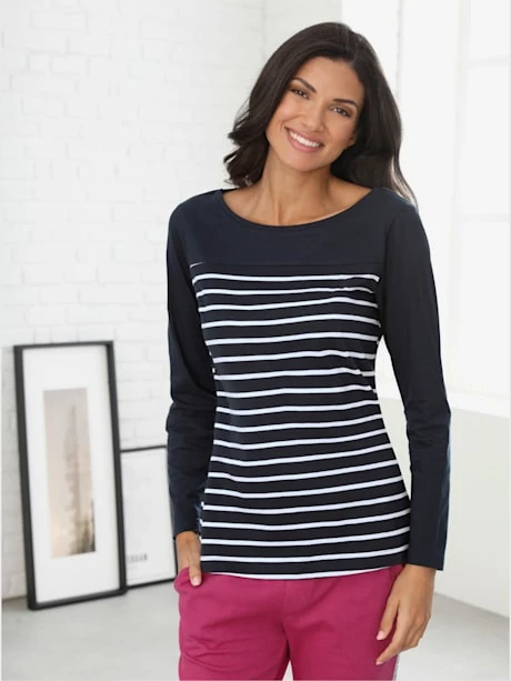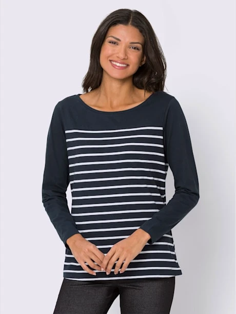 T-shirt de loisirs joliment rayé. Encolure en U discrète et manches longues.