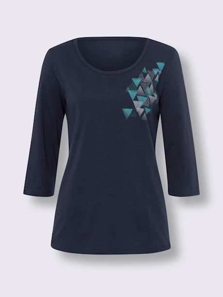 T-shirt de loisirs agréable à porter orné d’un joli motif imprimé devant. Encolure ronde et manches 3/4.