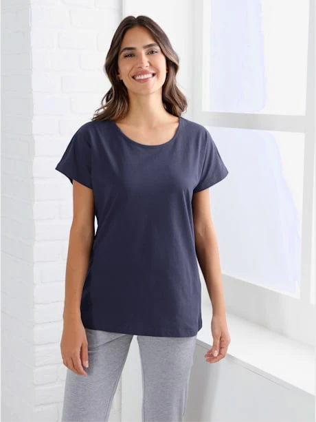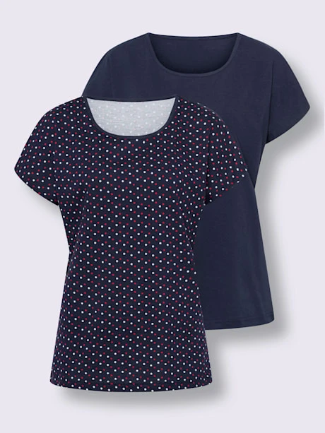 T-shirt de loisirs en coton pour deux fois plus de plaisir. Lot de 2 : 1 uni, 1 à pois. Mancherons.