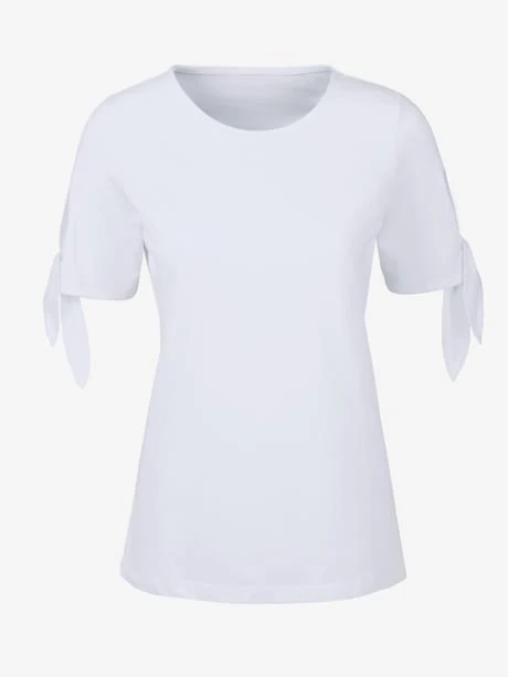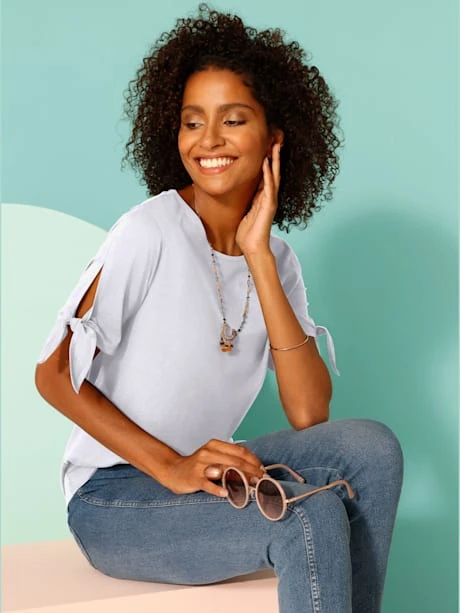 Prix imbattable. Superbe T-shirt orné d`une petite fente et d`un lien à nouer à la finition des manches.