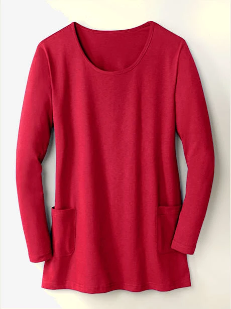 À la fois facile à assortir et élégant : T-shirt long à poches plaquées.