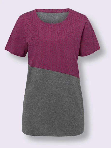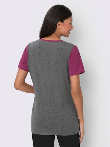 T-shirt long : superbe et à petit prix ! Motif minimaliste sur la partie supérieure et aspect chiné sur la partie inférieure. Chiné au dos.