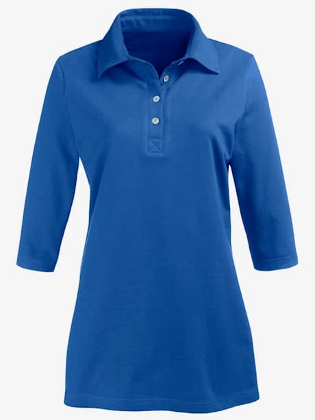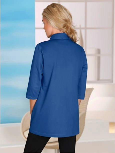 T-shirt long à effet affinant. Courte patte de boutonnage sur le col, pour un style chemise raffiné. Manches 3/4.