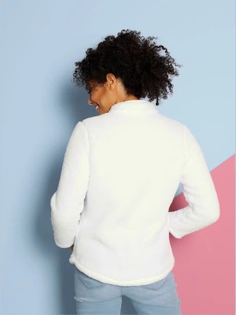 T-shirt polaire : un favori mode tout en douceur pour la maison et les voyages. Col montant et glissière courte. Ourlet légèrement arrondi devant et au dos.