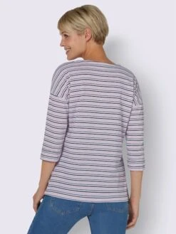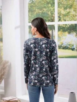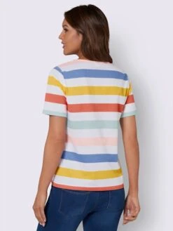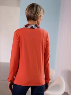 T-shirt Ajouré Empiècement Broderie Col Tunisien Et Mancherons