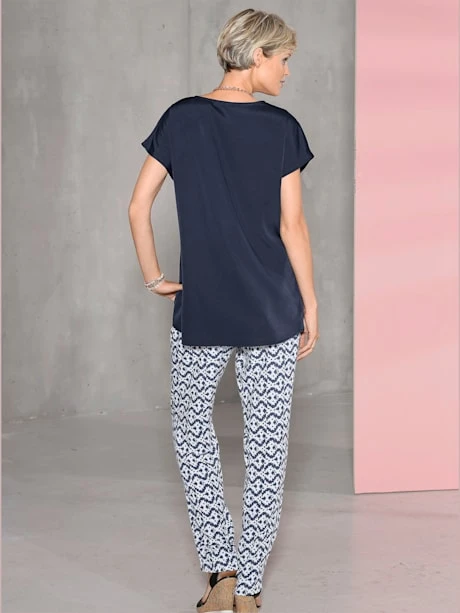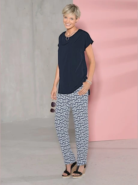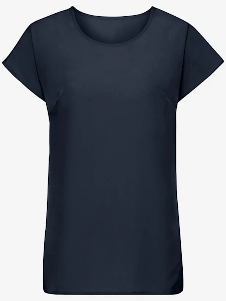 Tunique facile à assortir, idéal en toute occasion. Col rond et mancherons. Ourlet légèrement arrondi au dos, droit devant.