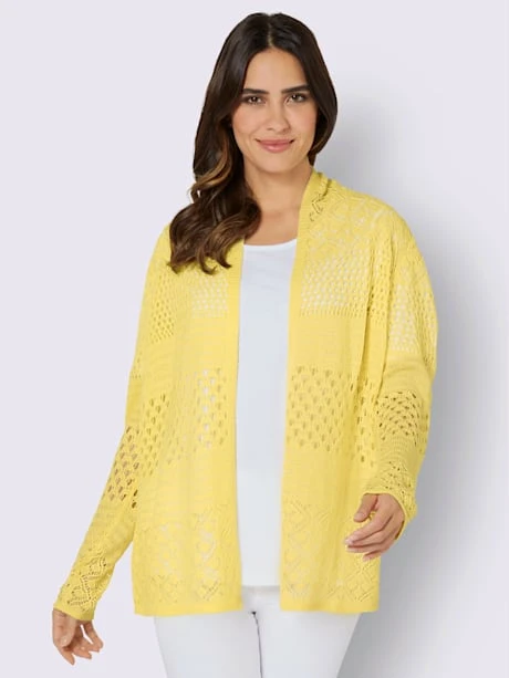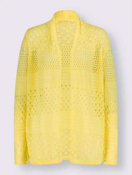 Veste en tricot décontractée à porter ouverte avec séduisant motif ajouré. Coupe longue pour des hanches et fesses affinées. Manches longues et finitions droites.