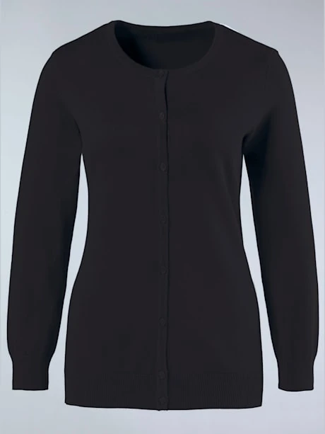 Veste en tricot polyvalente avec encolure ronde, boutons ton sur ton et finitions des manches côtelées.